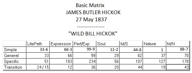 James Butler Hickok was born on 27 May 1837 and died on 2 August 1876 at the age of 39. Of the seven Basic Matrix components, six are master numbers, and they're powerful master numbers.
